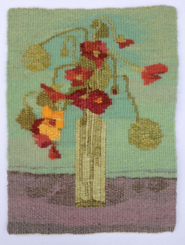 still life (sad nasturtiums) 2021 still life (sad nasturtiums) 21 x 26 cm 2021 Kate Derum Award before after Share this: Click to share on X (Opens in new window) X Click to share on Facebook (Opens in new window) Facebook Click to share on Pinterest (Opens in new window) Pinterest More Click to email a link to a friend (Opens in new window) Email Like Loading... Related Posted in tapestryTagged cochineal, copper, coreopsis, handspun yarn, hemp, hollyhocks, indigofera australis, lac, madder, natural dyes, silk, spinning, still life, tapestry, wool